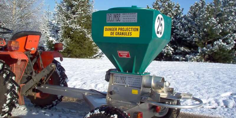 Elektrischer Straßenstreuer, Arbeitsbreite 4 Meter, geeignet für trockenes oder feuchtes Salz, erhältlich in 80 und 120 Litern.