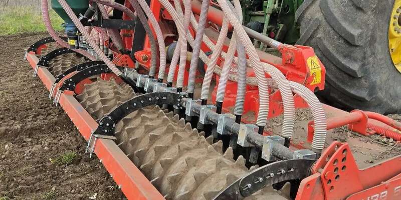 Sämaschine für kleine und große Samen, doppelte elektrische Verteilung und hydraulische Belüftung. Pneumatischer Transport der Samen zu einem Verteilerkopf mit 16 Auslässen, optional bis zu 32 Auslässen. Behälterkapazität 1700 Liter. Sie kann für alle Arten von Bodenbearbeitungsgeräten (Striegel, Grubber, Cover Crop, Kreiselegge, Zinkengeräte usw.) verwendet werden. Einsatz für verschiedene Arbeiten: Insektizid-Mikrogranulate, Starterdünger, Unkrautbekämpfungsgranulate, Aussaat von Getreide, Klein- und Großkörnern.
