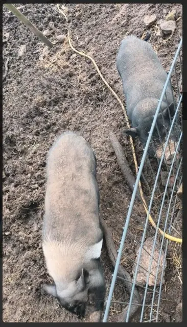 Wegen Aufgabe der Tierhaltung aus gesundheitlichen Gründen, geben wir unsre 2 Minischweine Röschen und Pfläumchen ab! Die beiden sind Geschwister!