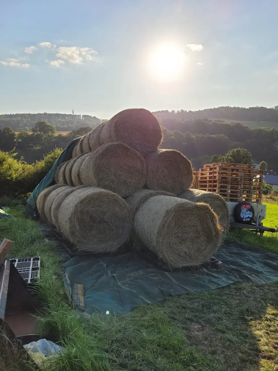 Habe Heu in Rundballen zu verkaufen. Die Ballen haben einen Durchmesser von 1,25m und sind trocken und unberegnet gepresst.
