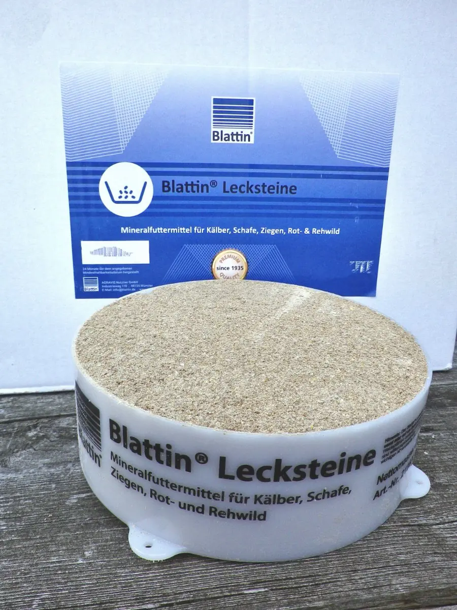 Blattin Leckstein für Kälber, Schafe, Ziegen, Rot- und Rehwild in der handlichen 2 Kg Schale.