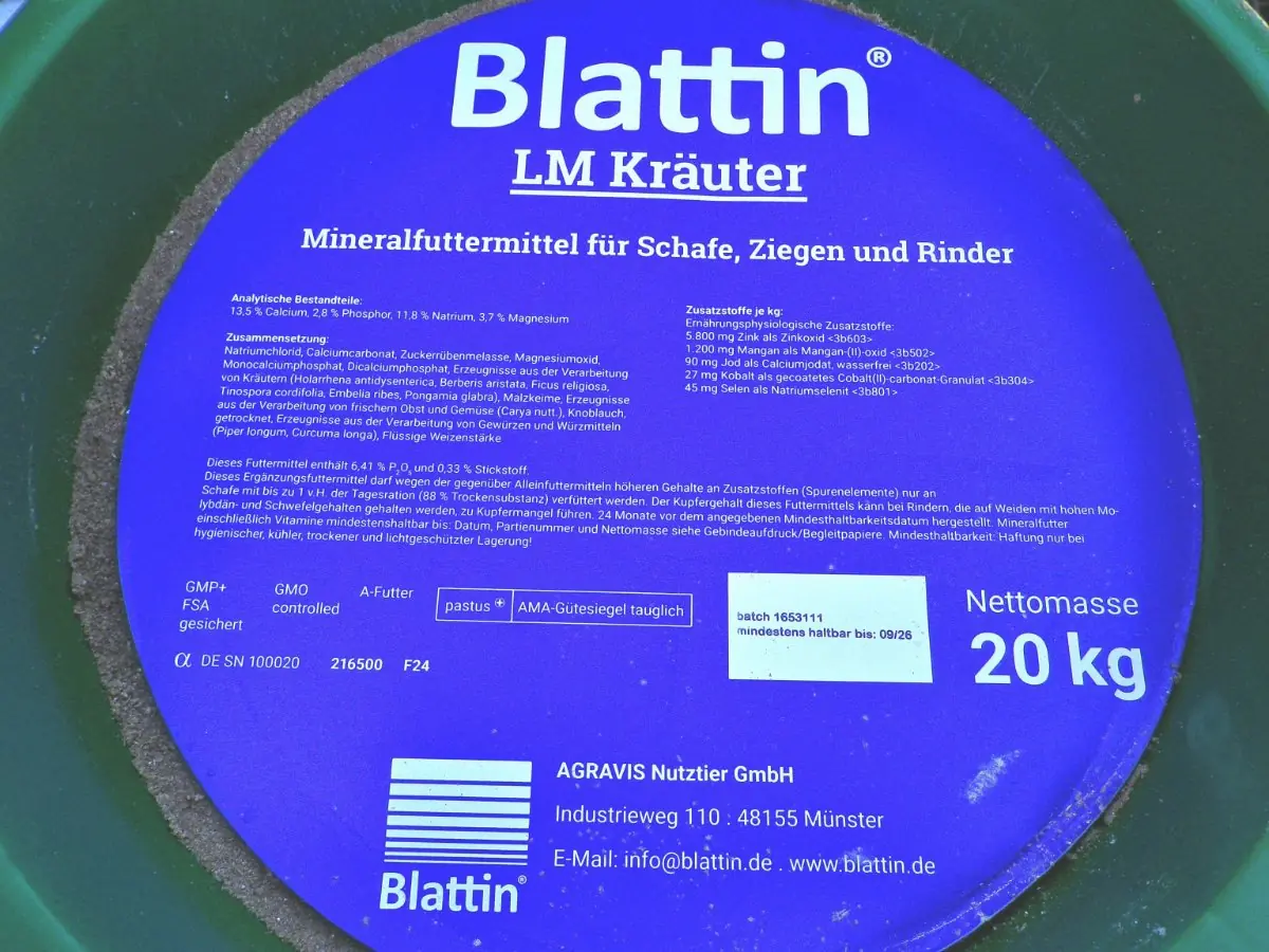 Mineralfuttermittel mit Kräuterzusatz als Leckmasse für Rinder, Schafe, Ziegen, aber auch für Gatterwild und Pferde.