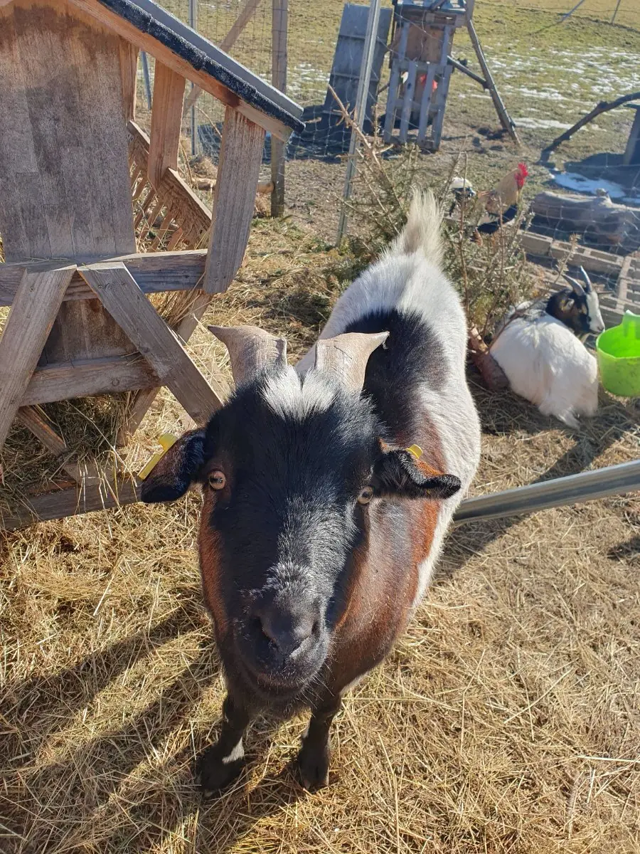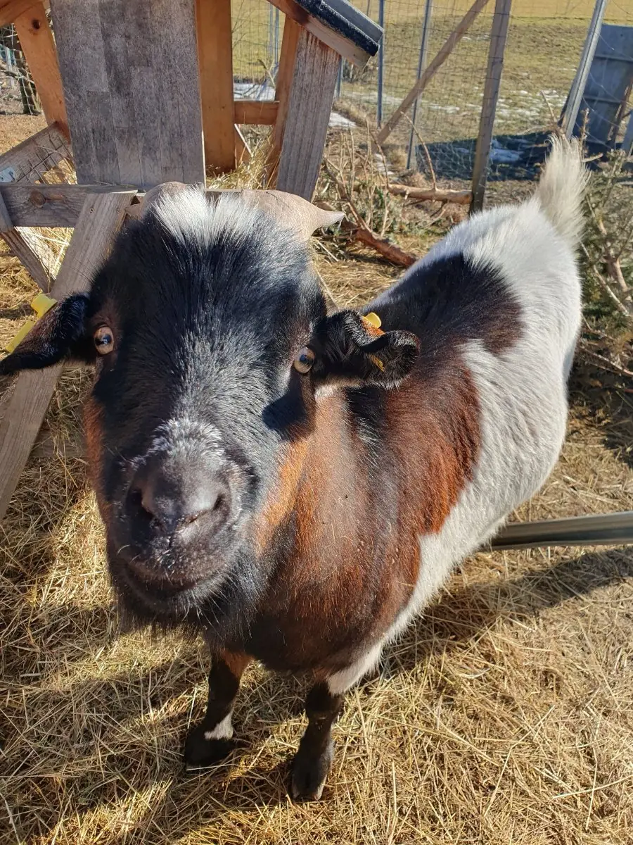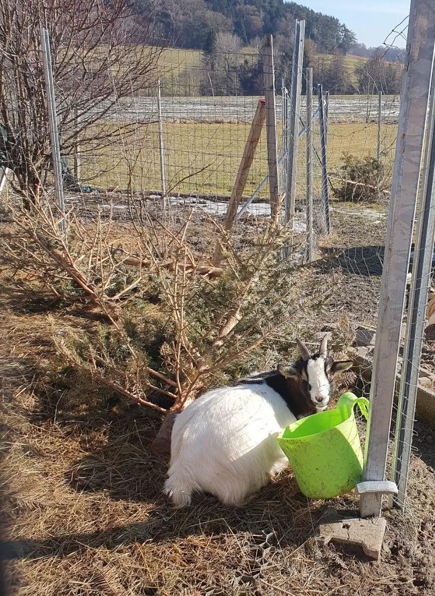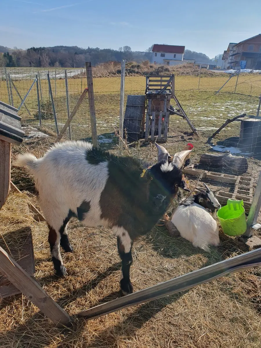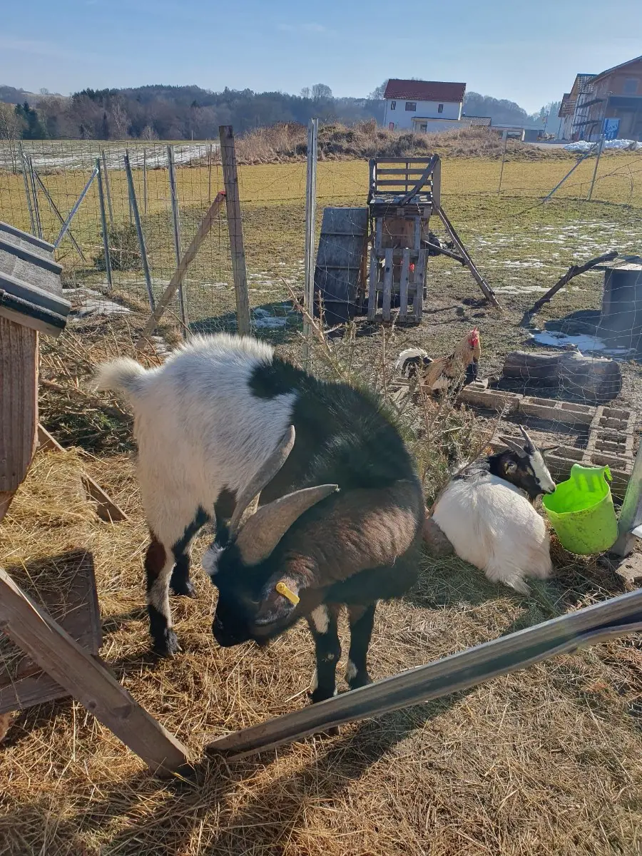 Wir möchten unsere zwei Ziegen (gekauft als Zwergziegen, jedoch ist das kastrierte Böcklein sehr groß geraten) in eine schöne Herde abgeben. Beide sind nun 2 Jahre jung, ein Bock und eine Geiß. Beide sind gegen die Blauzungenkrankheit geimpft.