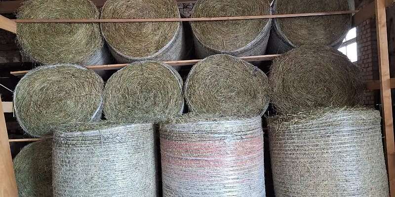 Blumen- und Kräuterheu (2. Schnitt 2025) von Biowiese, innen trocken gelagert in Ballen Durchmesser ca. 1,00 m, Gewicht ca. 200 kg in sehr guter Qualität zu verkaufen. Abholpreis € 18,00 (inkl. MWSt.).