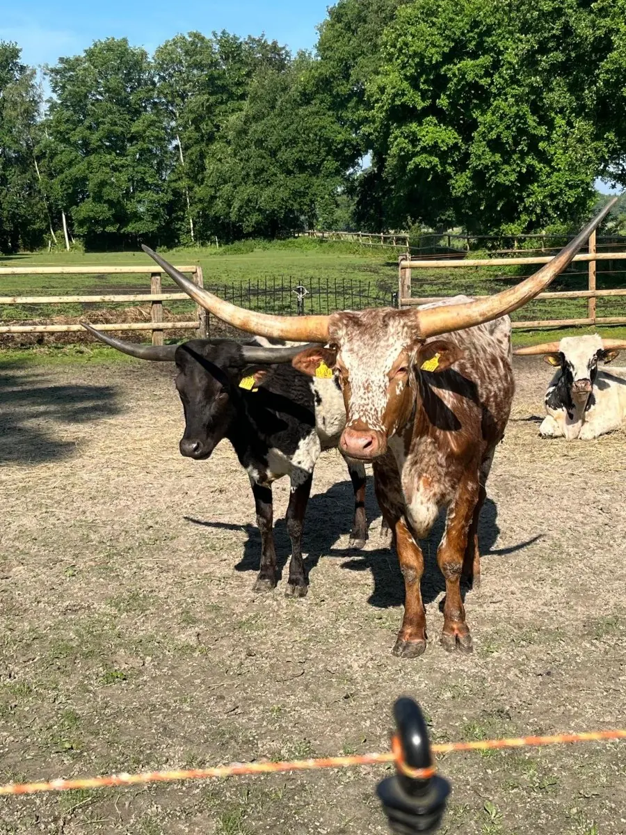 Aufgrund von Zeitmangel verkaufe ich meine Texas Longhorn Herde bestehend aus einem (Deck)Bullen, einem Ochsen und einem Absetzer Bullkalb. Alle verfügen über original Papiere des TLBAA und sind bei Masterrind gelistet.