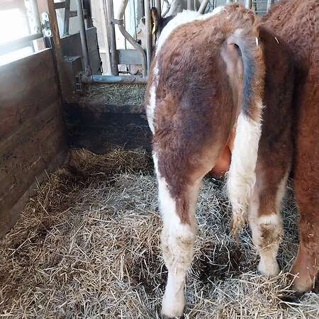 Der Bulle vererbt sehr leichtkalbige Kälber und ist auch gegen Blauzunge geimpft worden.