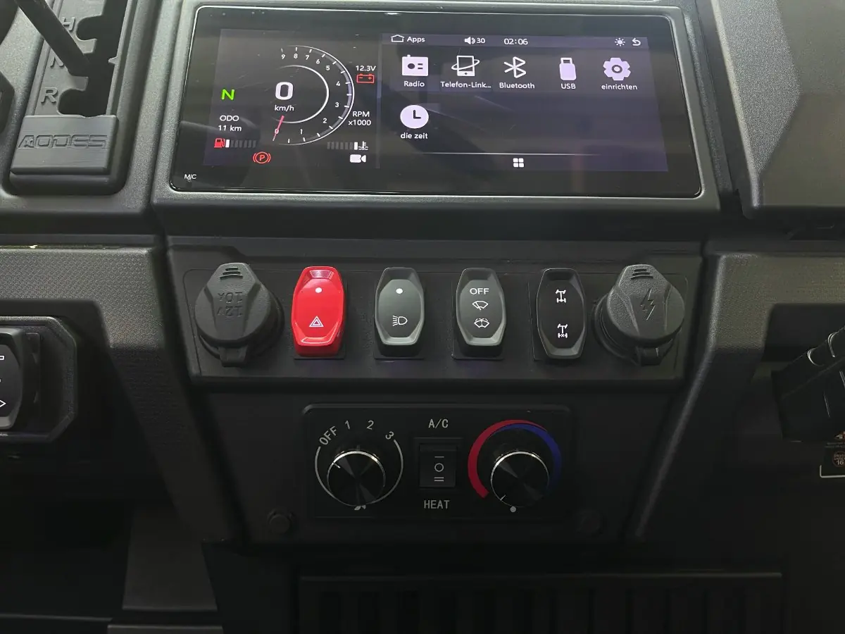 Die ODES Workcross 1000 – 6 Sitzer ist ein geräumiger und leistungsstarkes UTV, das sich ideal für den Einsatz in landwirtschaftlichen, forstwirtschaftlichen oder anderen Outdoor-Aufgaben eignet. Mit Platz für sechs Personen bietet er viel Platz und Komfort für die Passagiere. Die Kabine mit Heizung und Klimaanlage ermöglicht eine komfortable Fahrt in verschiedenen Wetterbedingungen. Mit der Workcross finden Ausrüstung und Mitfahrer genügend Platz. Die technischen Eigenschaften wie die Servolenkung und die Einzelradaufhängung verbessern die Handhabung und das Fahrverhalten. Die Ausstattung mit Alufelgen, Radio, Seilwinde und Anhängerkupplung bietet eine angenehme und funktionale Fahrerfahrung. Die 24-monatige Garantie bietet zusätzliche Sicherheit und Zuverlässigkeit für die Workcross.
