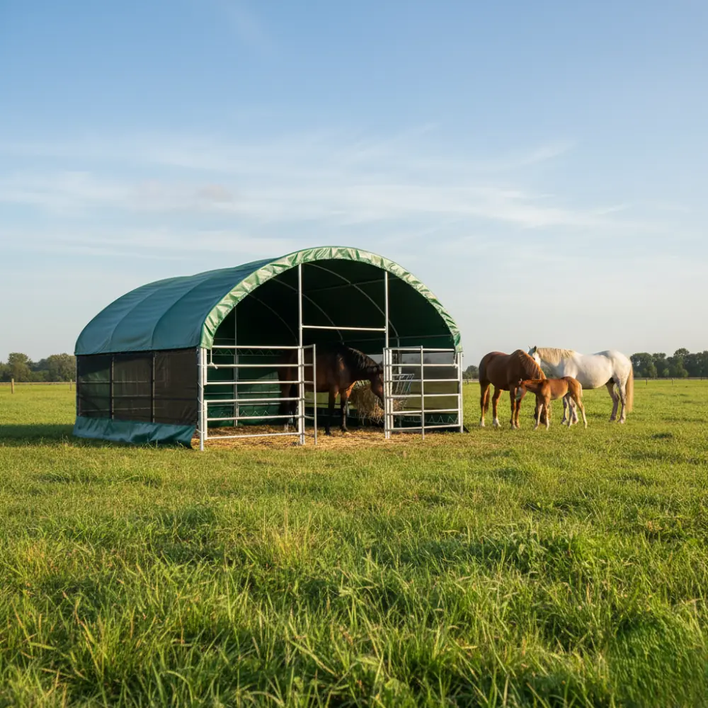 Profi Rundbogenhalle & Weidezelt aus PVC – Stabil, Feuerfest & Inklusive Gatter