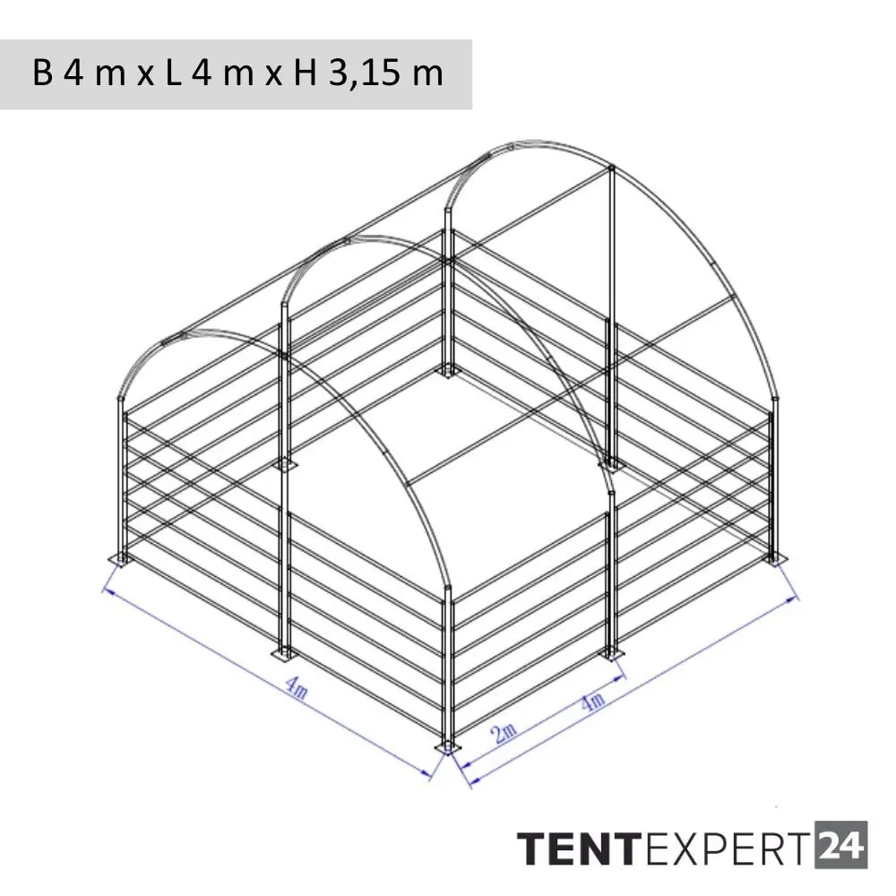 Suchen Sie einen robusten ganzjährigen Schutz für Ihre Nutztiere, Maschinen oder Futtervorräte? Unsere Premium Rundbogenhalle bietet dank ihrer extrem stabilen Konstruktion und der hochwertigen PVC-Plane ein Höchstmaß an Sicherheit vor Witterungseinflüssen. Die speziell abgerundete Form dämpft Krafteinwirkungen durch Wind effektiv ab und lässt Niederschlag einfach abgleiten.