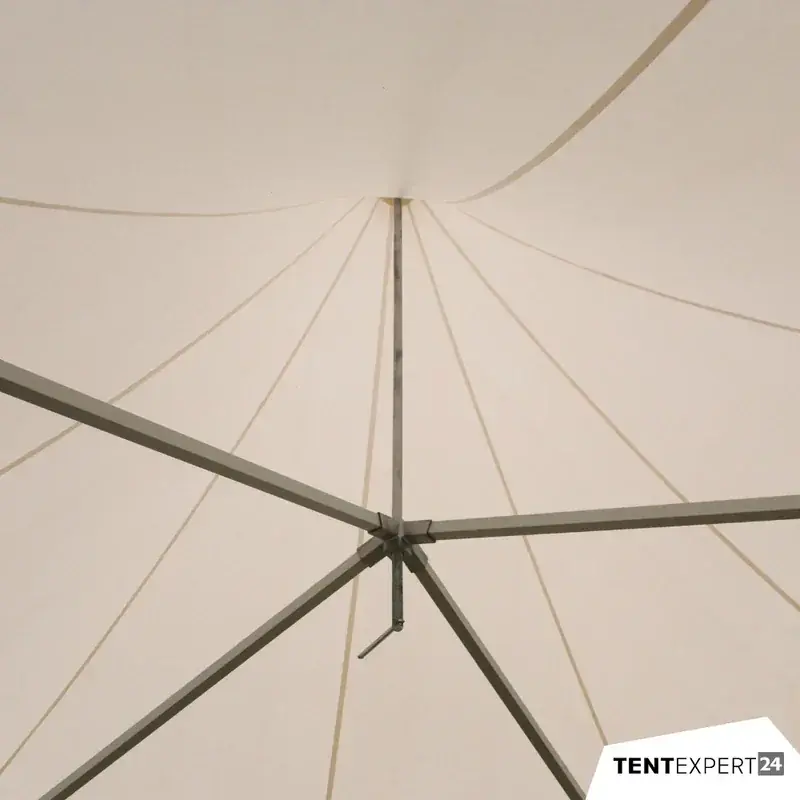 Das Dach der Pagode ist aus 63x63x2mm Aluminiumprofilen gefertigt, was sie besonders stabil und langlebig macht. Die Aluminiumprofile sind pulverbeschichtet und dadurch besonders wetterbeständig und pflegeleicht.