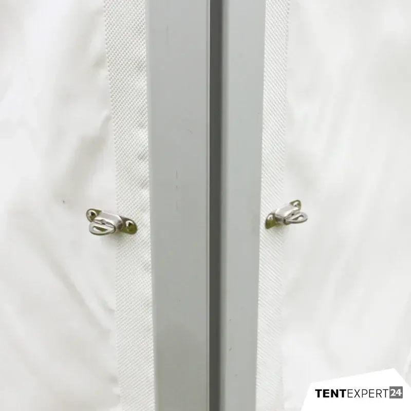 Standardmäßig wird die Pagode Fensterlos mit weißen Planen geliefert. Die Anzahl der Planen mit Fenster (2 pro Seite) sind bei der Bestellung gegen Aufpreis wählbar.