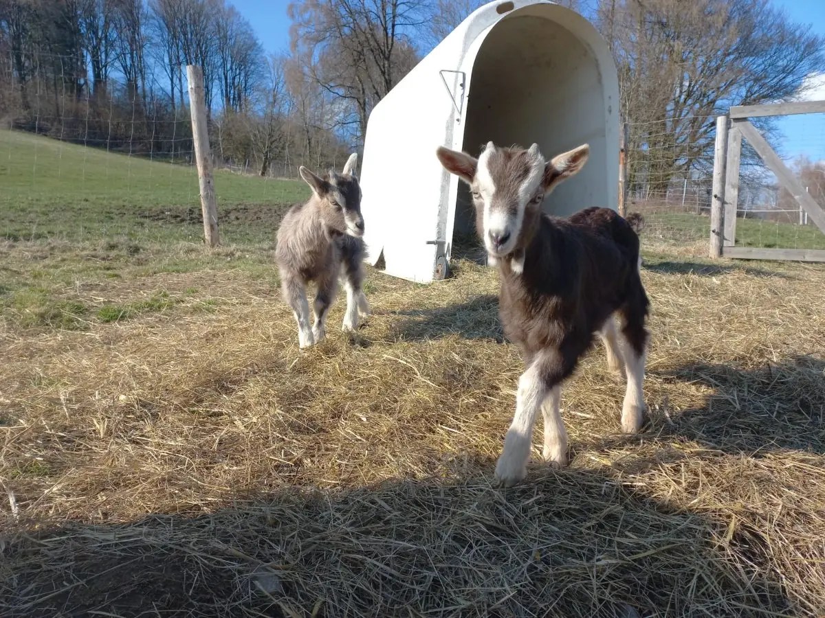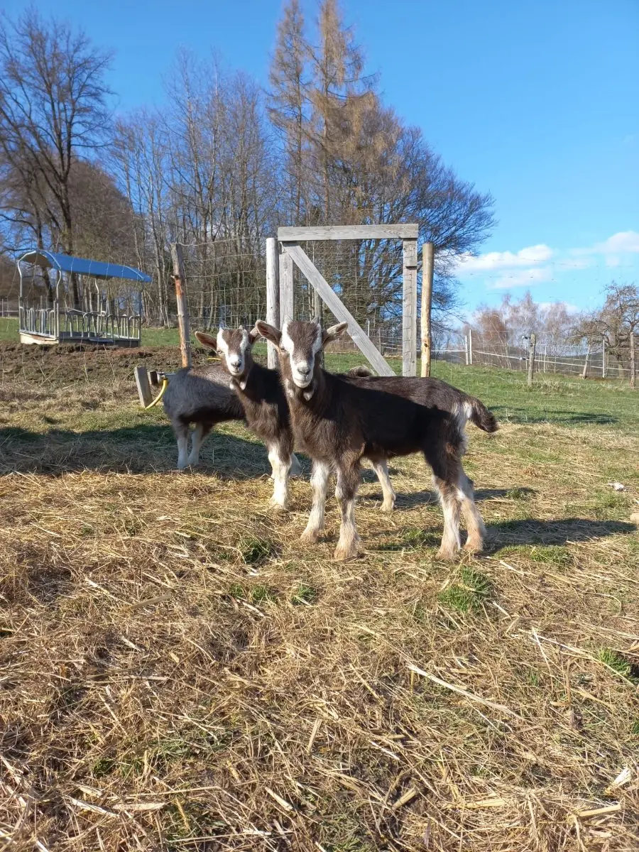 Abzugeben sind drei Ziegenböcke und eine Ziege . Geboren am 05.03.2026. Mutter und Vater sind Thüringer Waldziegen. Weitere Informationen oder aktuelle Bilder gerne auf Anfrage.