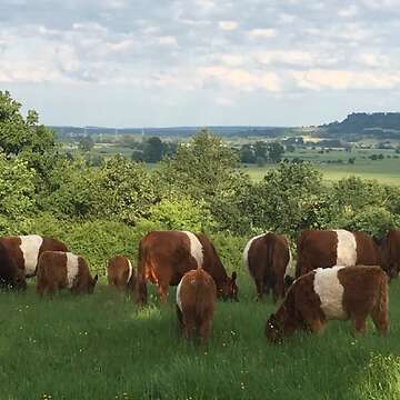 Der auffällige weiße Gürtel um die Körpermitte ist das markanteste Merkmal der Belted Galloways. Darüber hinaus sind sie ähnlich robust und wollen oft extensiv gehalten werden, liefern jedoch eine besonders hochwertige Fleischqualität.