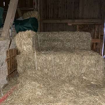 120 Stk. Heu Quaderballen 2025 am19.6. regenfrei eingebracht, 390kg in Halle auf Paletten…
