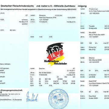 Ich biete eine tragende Aberdeen Angus Kuh (geb. 11.12.2015) mit ihrem ersten Kalb…