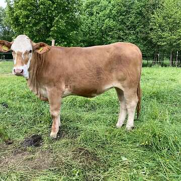 Biete hier eine hochtragende Kalbin, Kreuzung Braunvieh mit Holstein-Rotbunt. Die Kalbin…